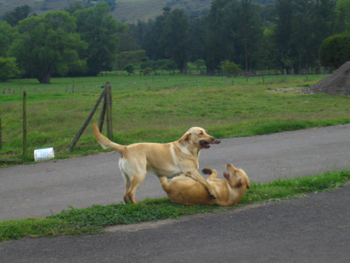 These 2 nine month old labradors play together all day long. Today, I am putting the sidecar back on the motorcycle and after lunch, we will go road test the new Guzzi "Breva" and Sunday there is a BMW volcano ride... Have a great weekend everybody.