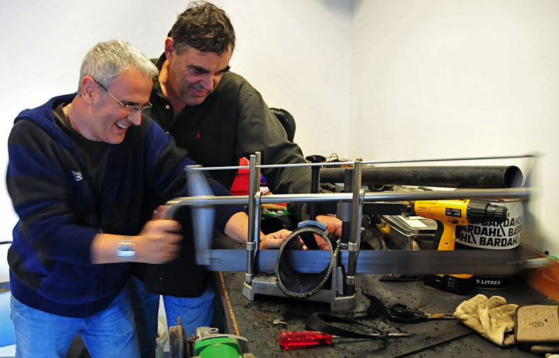 We were able to put Raphael at work. Here sawing a toilet pipe...