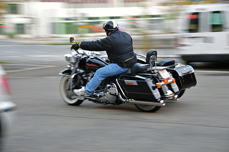 Even if he is a little short on his leg, Claude manage his Road-King Precision sidecar quite well.