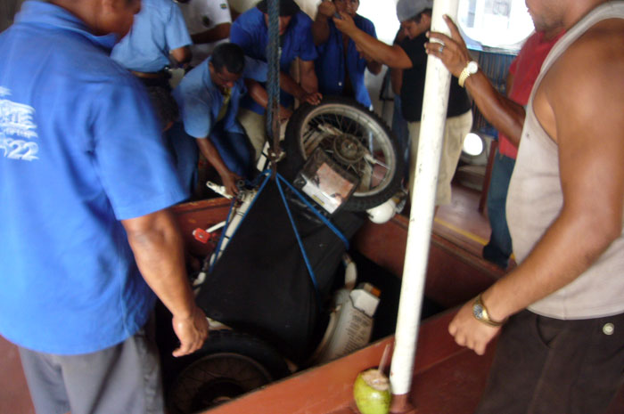 The door on the floor to the lower level was very small and the sidecar had to be almost vertical to pass it!