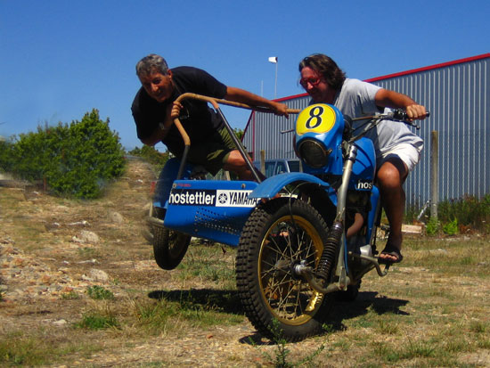 J'ai acheté ce Sidecar-cross EML pour faire le Paris Dakar de 1981 (que je n'ai pas fait). Denis avec son pére me l'ont gardé précieusement pendant ces dernières 24 années, en attendant mon retour. Cet été, je l'ai ramené à Genéve pour le remettre en état et aller dans le Sahara avec Giorgio et Vincent... bientôt.  |