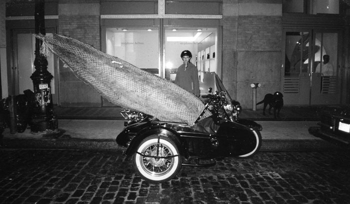 Je suis allé dans le New Jersey avec Jessica pour le couper nous-même... Personne ne croyait que ce sapin de plus de 4 m rentrerait dans le sidecar... même Betty!