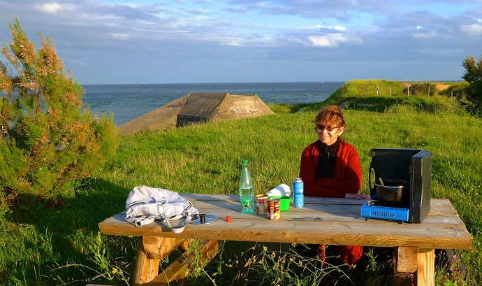 a delicious can of "Lentil petit salé" ready in 3 minutes on the portable gas stove from the van.