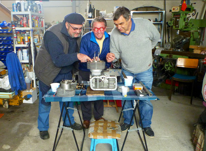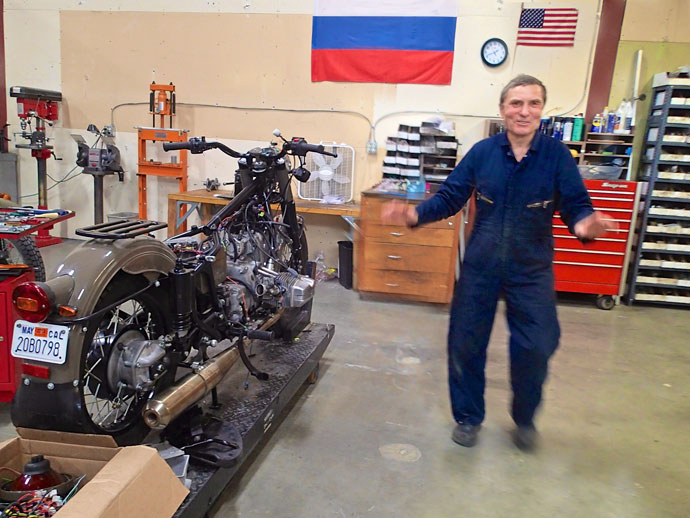 Working on his new Ural 1100cc with Guzzi cylinder !!!