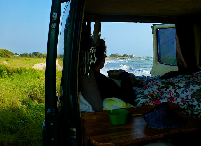 Back from California to Barfleur, we found with Lorraine, the best hotel in the world, on the beach in the van !!!