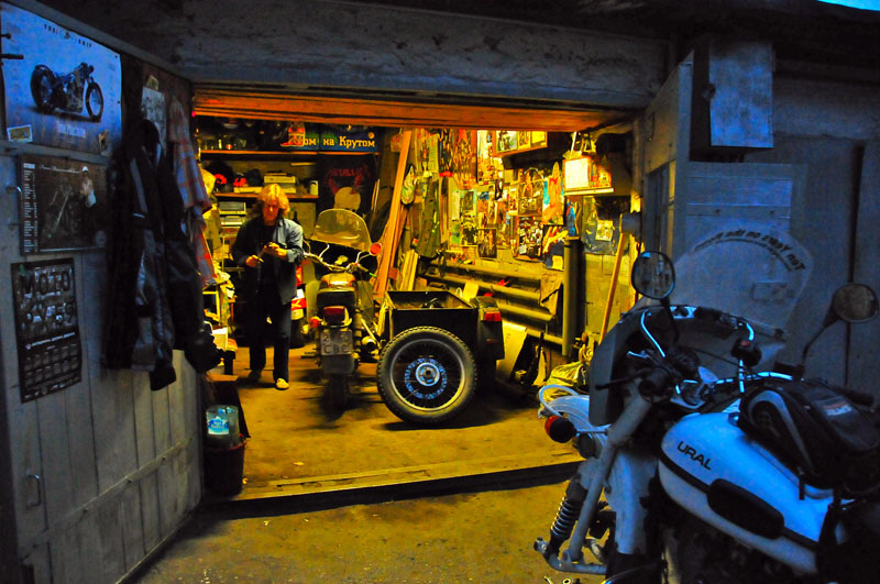 Le moteur est remonte sur la moto et tourne rond apparement. On a eu un probleme avec le gas qui a ressoude le reservoir d'essence. Il a fait une implosion et il est complement deforme. On a essaye de monter un ancien modele, mais il sont trop etroit. Aujourd'hui, on va faire un montage temproraire pour monter mon reservoir deforme pour que je puisse faire les 3000 km pour aller jusqu'a l'usine d'Ural a Irbit et en prendre un neuf. Ensuite je file en Mongolie. |