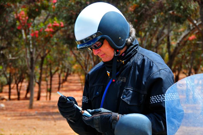 J'ai recupere Jean-Louis a la gare venant de Casablanca, il etait charge comme une mule mais avait aussi un nouveau casque d'un style nettement mieux que l'ancien!
