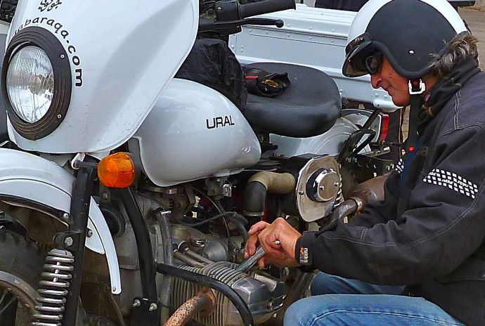 On est reste a Dakhla pour la journee. Une petite couture de cordonnerie , des bricoles de couture et bien entendu de petites soudures avec un petit renforcement sur l'aile du sidecar.