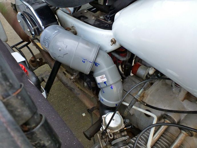 Le moteur de Jean-Louis n'avait jamais tourné librement, il claquait a l'echappement, et il fallait toujours le pousser avec les gaz. Maintenant avec une chambre de tranquilisation de 5 litres pour les 2 carburateurs il est devenu dou comme un agneau et se sent completement libéré a tous les tours !!!