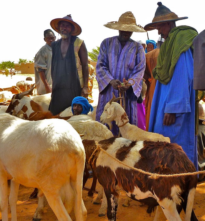 Le marché aux bestiaux de Fotama à des moutons , des chèvres et des vaches. J'y ai vu beaucoup de transactions.