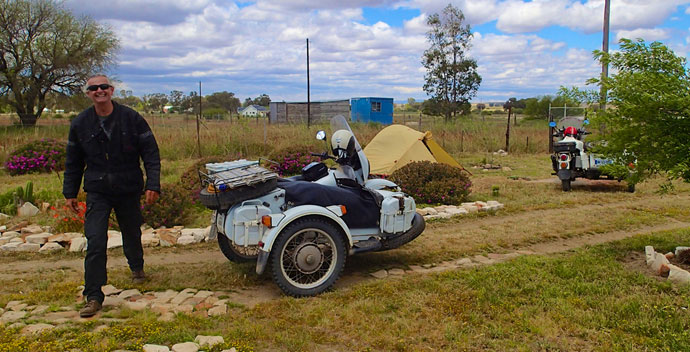Aujourd'hui, on va célébrer mon 67ème anniversaire en se faisant griller des filet et saussices d'oryx dans le désert avec mon copain Kirby (qui s'est acheté un sidecar Ural en me voyant passer l'an dernier), sa femme Marieke, Jai (Indien, èlevé à Singapour, a vécu en Australie et maintenant en Namibie), sa femme Gomati (èlevèe en Inde puis a fait ses études aux USA) et leur fille Chitra. |