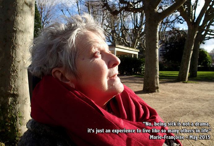 Finally, all the people working at Villa Concorde who were dedicated to provide the best possible comfort to Francoise, physical, pshychological and emotional until the last day of her "Station of the Cross".