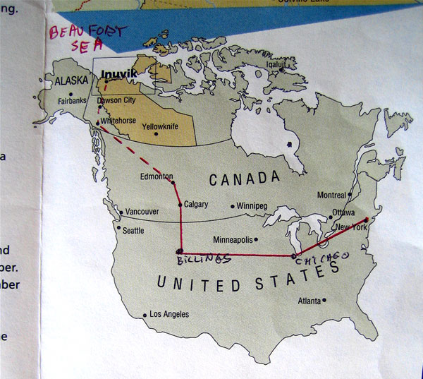 ...then it's North for the next 3000 miles up to the Arctic Ocean!