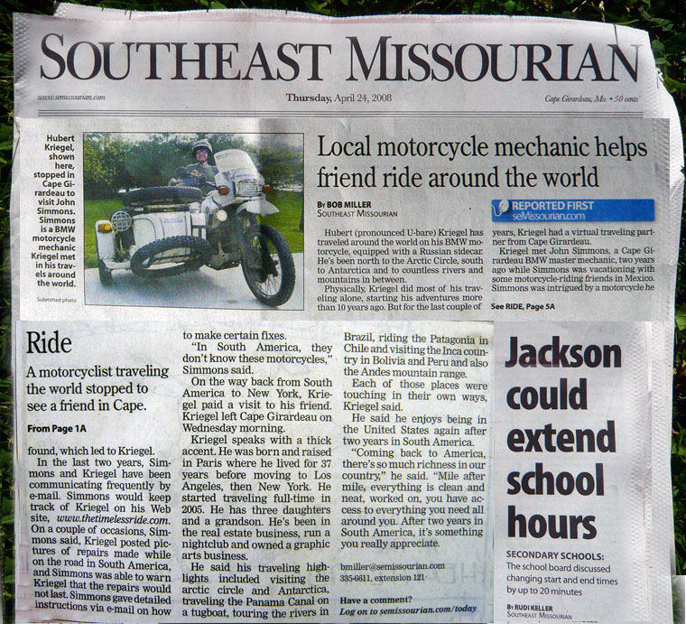 John brought me the article that was published when I passed Cape Girardeau a couple of week ago.