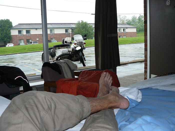 It rained the whole day, so no sleeping on the outside, I picked up a motel to dry my stuff.