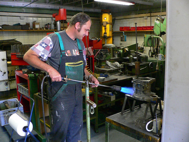 I had to go back to Geneva to visit Stephane to fix the Guzzi gearbox... the gear shift spring broke. With the broken bearing on my BMW R100GSPD in Canada last March, it's my 2nd gearbox this year!!!