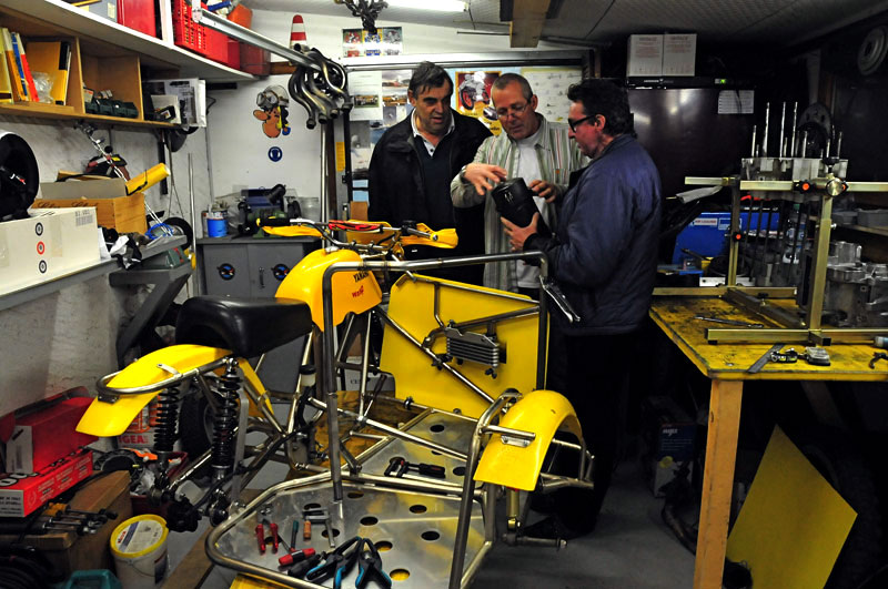 He is renovating a Wasp sidecar cross mounted on a Yamaha 880cc. We discussed the air filter extensively.