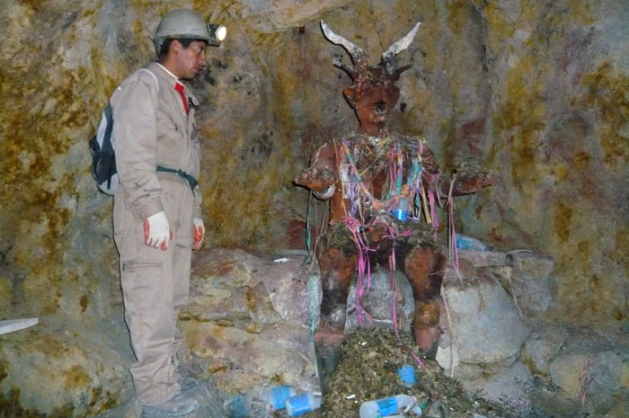 All miners will stop at "Tio" to offer coca leaves, alcohol and cigarillos to insure a safe day at work.