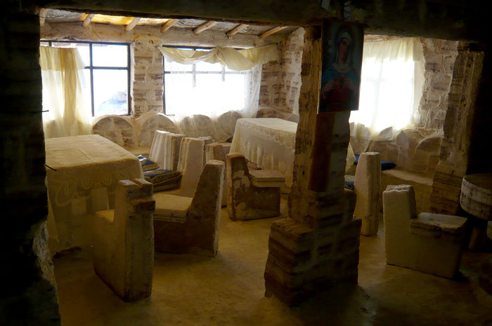 Notice the furniture's made of salt, they don't contradict the atmosphere