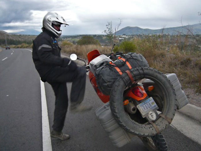 For Jean-Louis, getting on his bike is a perilous exercise requiring momentum balance and luck!