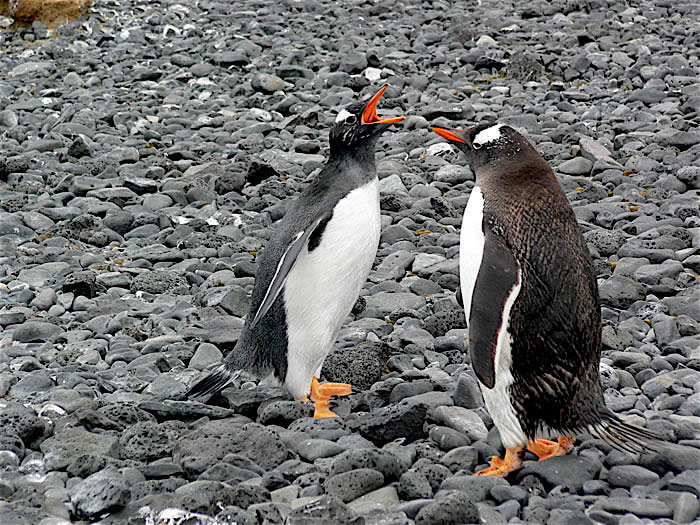 On the left, the chick is begging for food. The mother stays impassible.