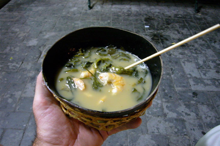 After the Opera, I ate the traditional Indian Tacacá: Manioc, tapioca and Amazonian cresson with shrimps