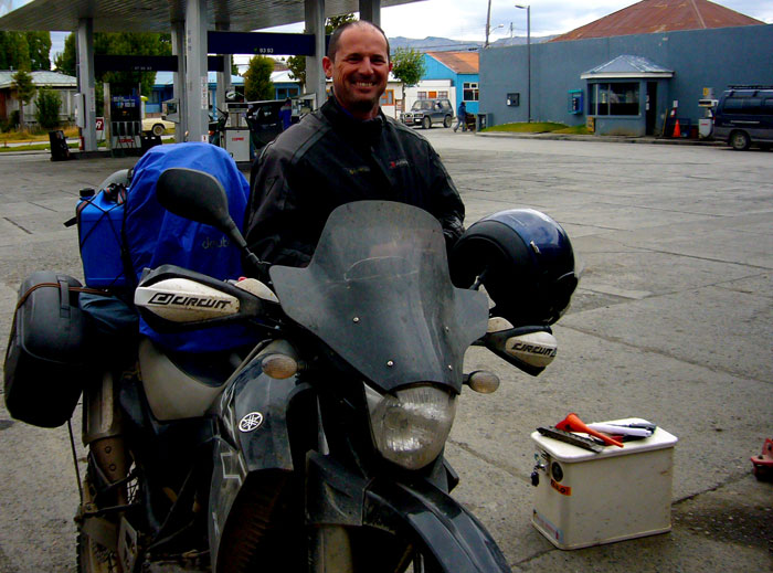 Ricardo is an Italian from Milano but lives in Brazil since 6 years, he was attracted by the sidecar but had to go to Punta Arena tonight for the ferry, I gave him my little road with the river passing to go to Ushuaia
