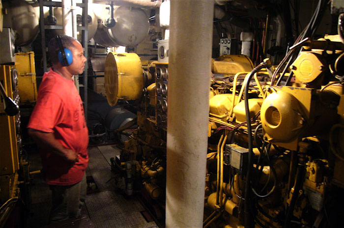 The Leonard M is 93 feet long, has 2 Caterpillar motor of 750 hp each. It carries 25,000 gallons of fuel.