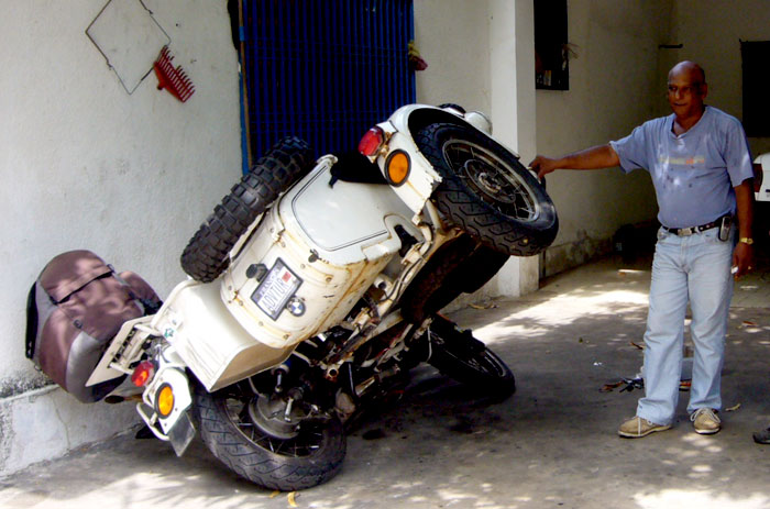 This morning, I had an oil problem & I returned to Jose. At the oil filter, we reversed the metal and paper gaskets (put the metal not the paper gasket). For $10 i have my 8 brake pads rebuilt as a spare.