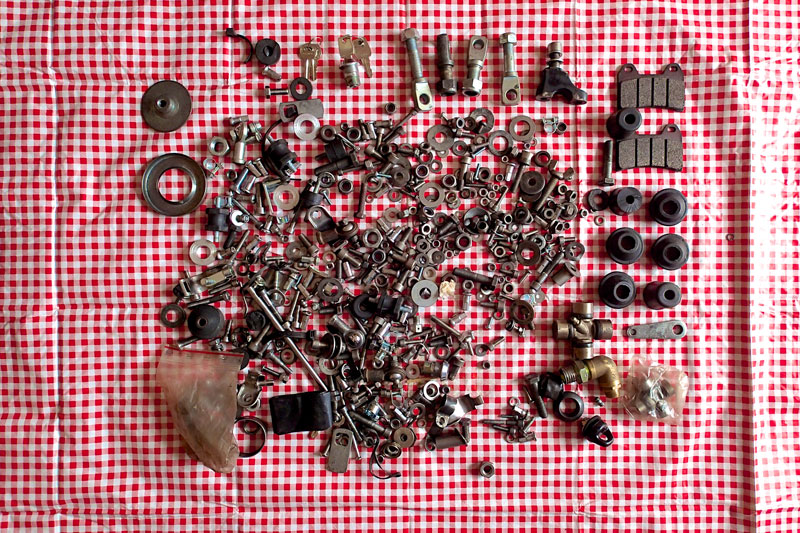 Les kilos de boulons, écroux et rondelles tout en acier inox, les garnitures de frein - Dégagés.