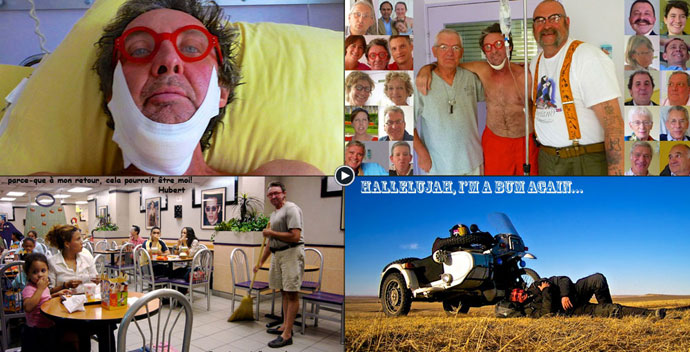 Aprés s'être régalé en roulant au Cameroun et au Congo, il a laissé son sidecar au Gabon et s'est envollé pour New York ou il se repose dans les bras d'Alison.