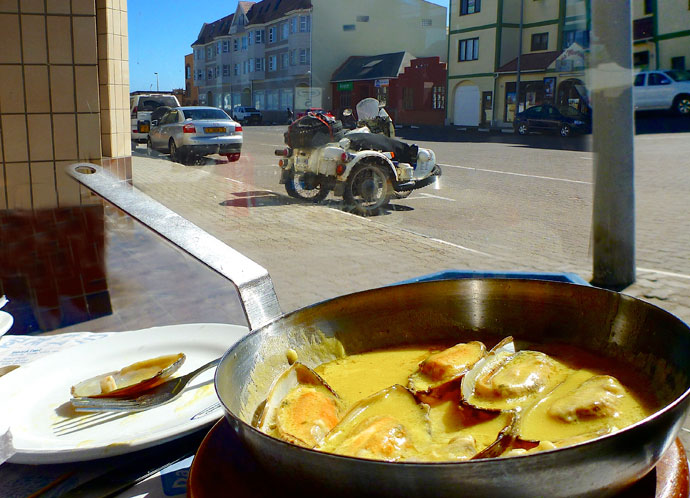 Jean-Louis a laissé son sidecar en Afrique du Sud à 3 jours de route de Walwis Bay en Namibie où est mon sidecar chez François.