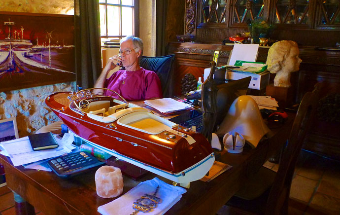 Michel m'a appris à faire du waterstart en planche à voile en 1983 à Malibu en Californie. Aujourd'hui, il vit à Mougins où il restaure en ce moment son bateau Riva entièrement bois de 1972 et qui n'avait pas vu l'eau depuis 20 ans. L'architecture, la qualité et les détails d'un tel bateau en font un oeuvre d'art.