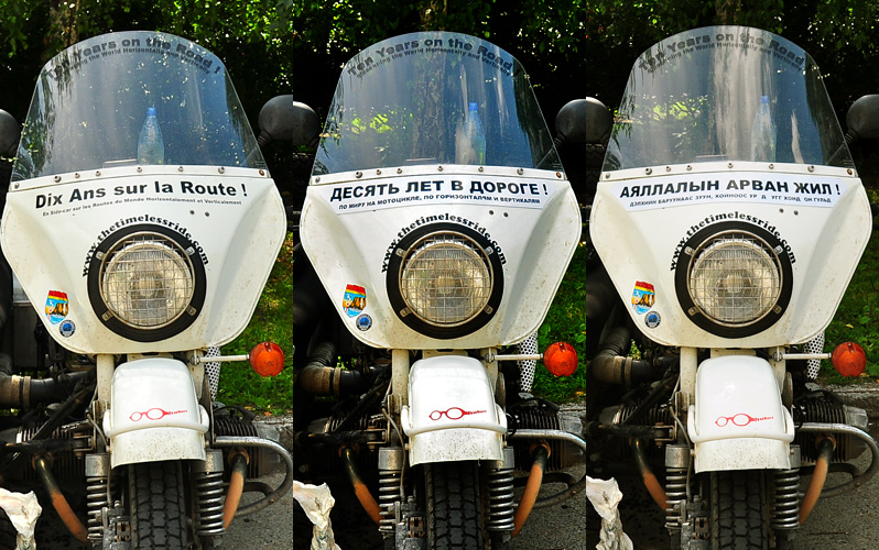La version Française est permanente et la Russe et Mongol sont sur un support magnétique. L'Anglais est sur le parebrise.