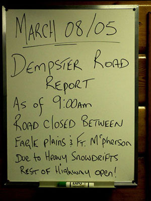 C'est là oû les vrai problèmes commencent... Ils annoncent le blizzard plus au Nord et le Dempster Highway sera fermé à Eagle Plains!
