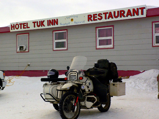 J'ai été très surpris d'apprendre que l'hôtel était complet... occupé par l'armée Canadienne! Ils ne m'ont pas laissé installer ma tente dehors et j'ai dormi dans mon sac de couchage dans leur bureau!
