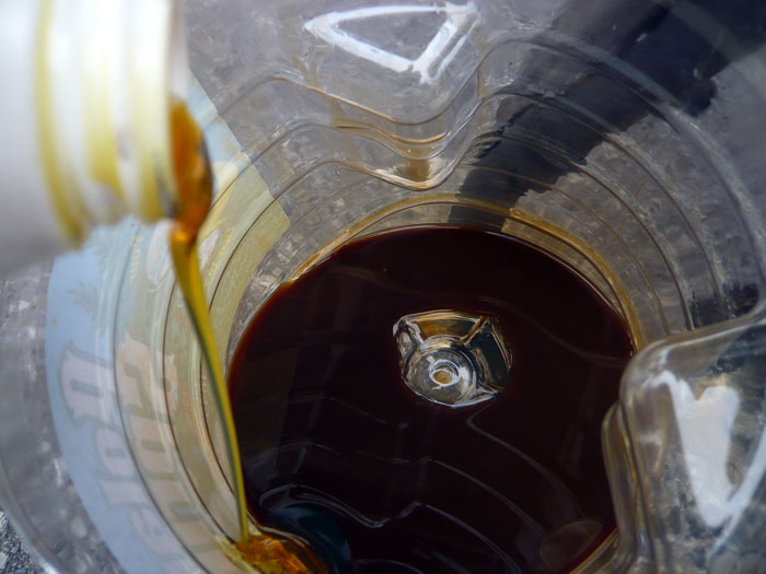 l'huile a été contaminée par l'eau. Regardez la différence de couleur avec de l'huile vierge.