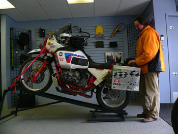 Nos deux R100GSPD sont préparées de la même façon; ici, je préfère la sienne que pour écrire sur mon Palm Pilot géant!