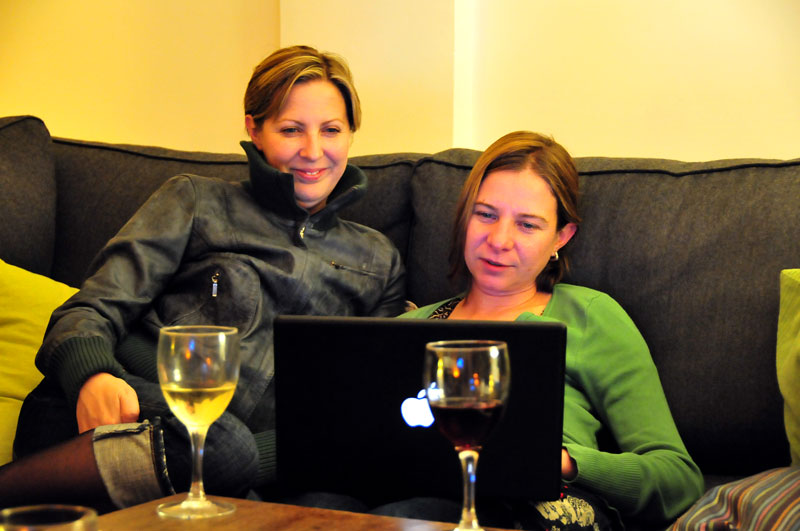 Eve et Celine regardent les robes de mariées...