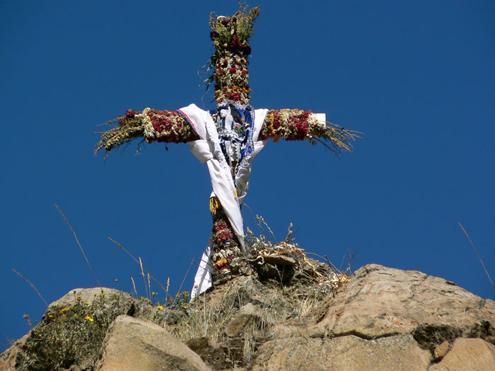Le sommet derrière nous est décoré d'une croix entretenue toute l'année.