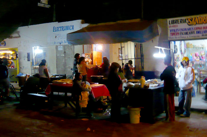 diner dans la rue dans le village où je me suis arrêté pour la nuit.