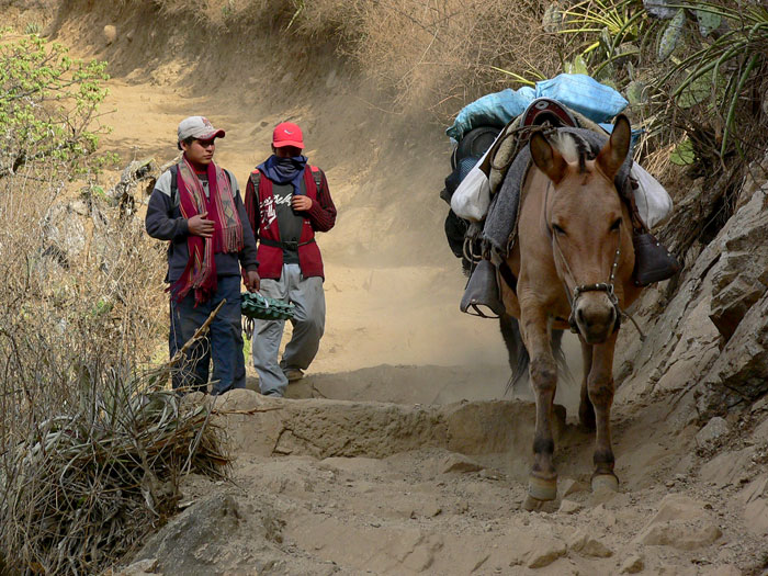 Waldi (drt) conduisait les mules avec Juan Pablo (qui a porté les oeufs à la main jusqu'au dernier jour)