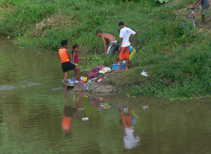 Ici, ce sont les enfants qui font la lessive dans la rivière!