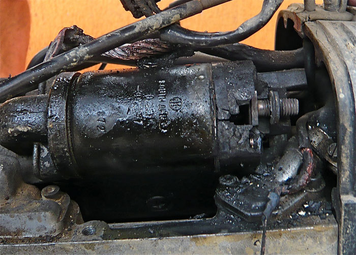 Le cable + du démareur s'est court-circuité sur le capot moteur et ça a tout brulé!