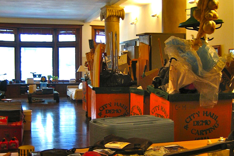 Moving from 2700 sf to 27 sf. (sidecar sf.) It took a lot of bins to clean it up!