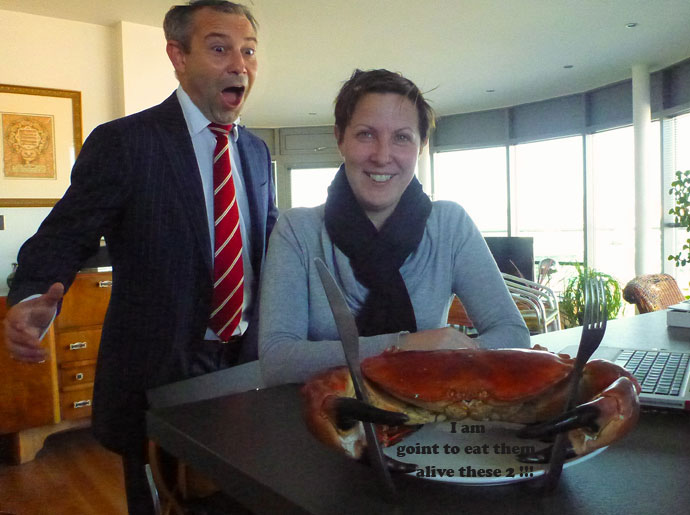 In Jersey UK, Peter was astonished by the crab I brought with me but Eve who knows me was not that surprised !!!