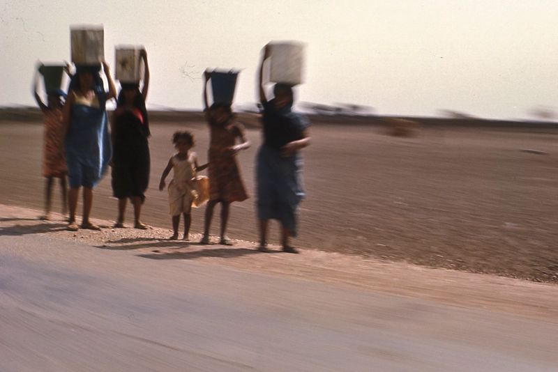 As we arrived close to Jeddah, we rode on asphalt. The whole family is doing the daily water chore.